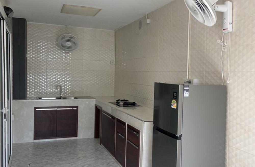 ห้องนั่งเล่นอบอุ่น | ครัวบิวท์อิน + เตาแก๊ส + ตู้เย็น + ทีวี