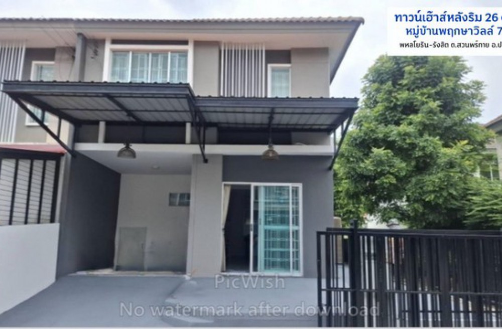 เมืองปทุมธานี , จังหวัดปทุมธานีขายถูกกว่าราคาประเมินทาวน์เฮ้าส์ 2 ชั้น renovate สวย หลังริม 26 ตรว.ทำเลดีมาก หมู่บ้านพฤกษาวิลล์79ใกล้สตูริโอเวิล์คพอยท์ พหลโยธิน-รังสิต ติดถนนเลียบคลองเปรมประชากร มีรถสองแถวผ่านหน้าหมู่บ้าน