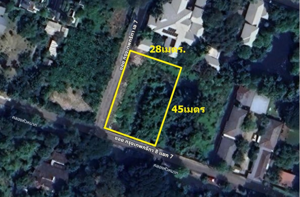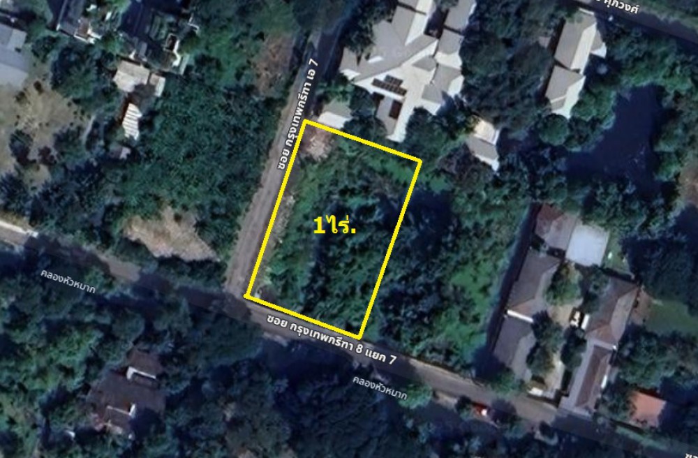 ขายที่ดินเปล่าแปลงมุม ขนาด1ไร่ ติดถนน2ด้าน ซอยกรุงเทพกรีฑา8แยก7.