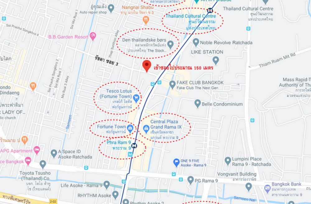 -- จากรัชดาภิเษก ซอย 3 เข้าซอยมาประมาณ 150 เมตร ถึงตำแหน่งบ้านที่ขาย