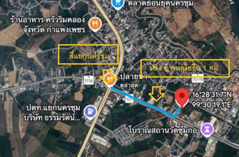 - 4 km from Kamphaeng Phet District and 12.8 km from Kamphaeng Phet Province.