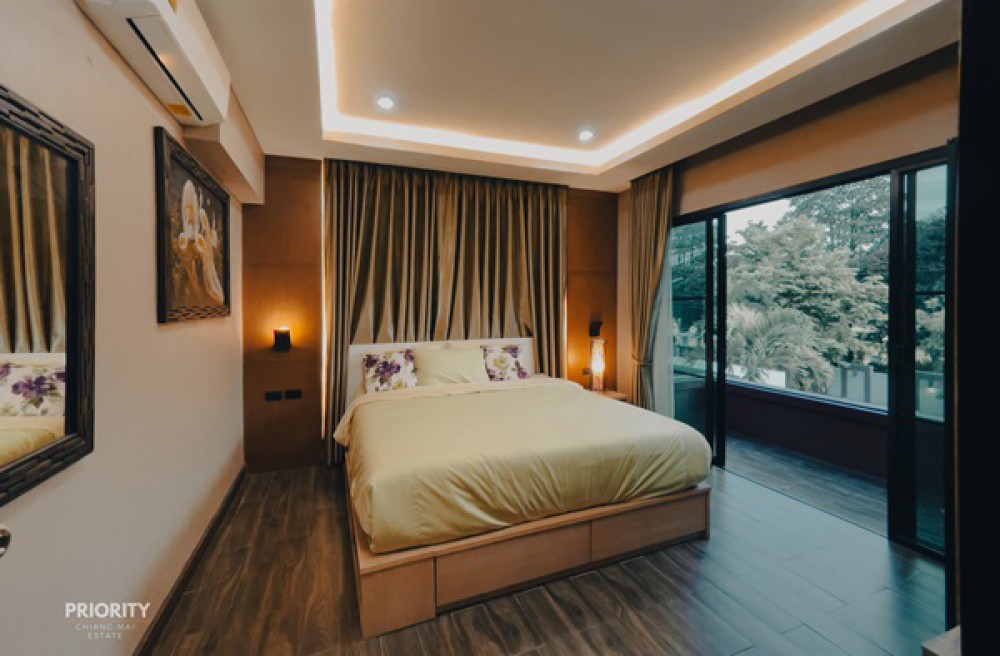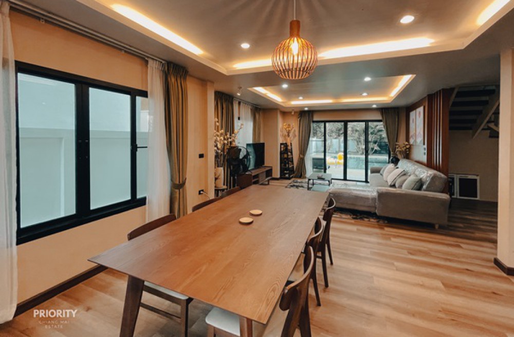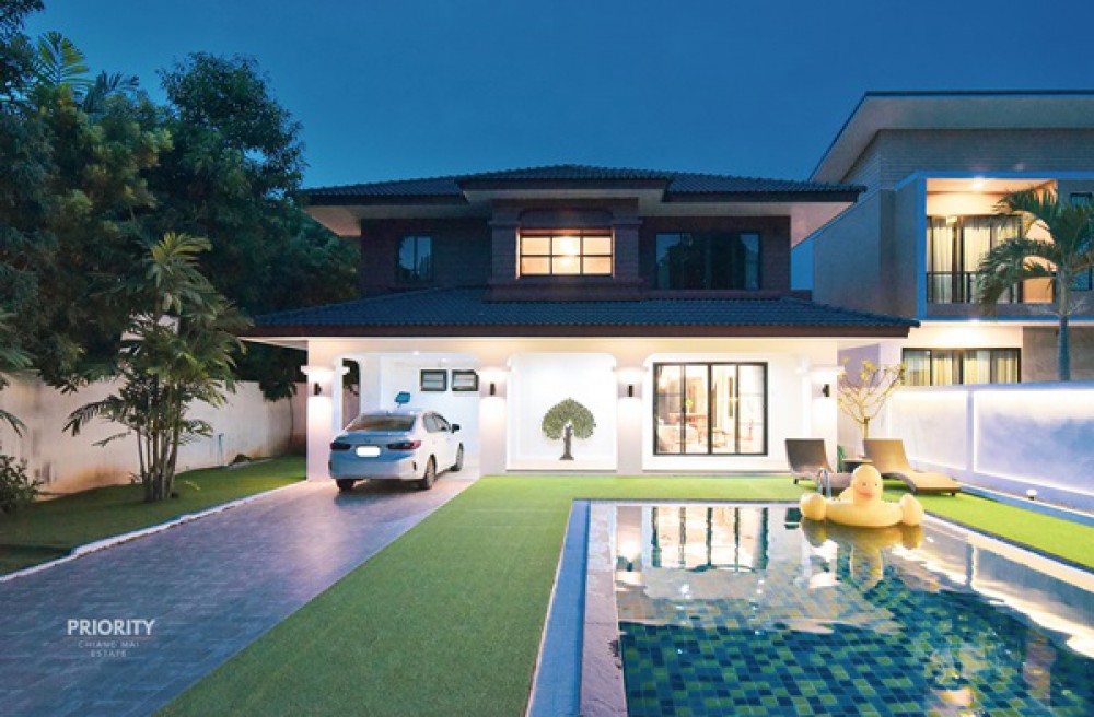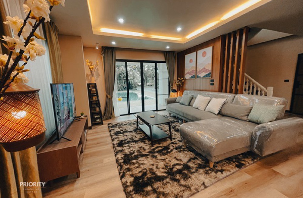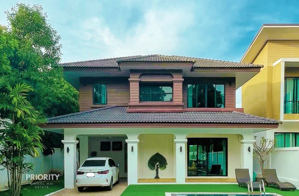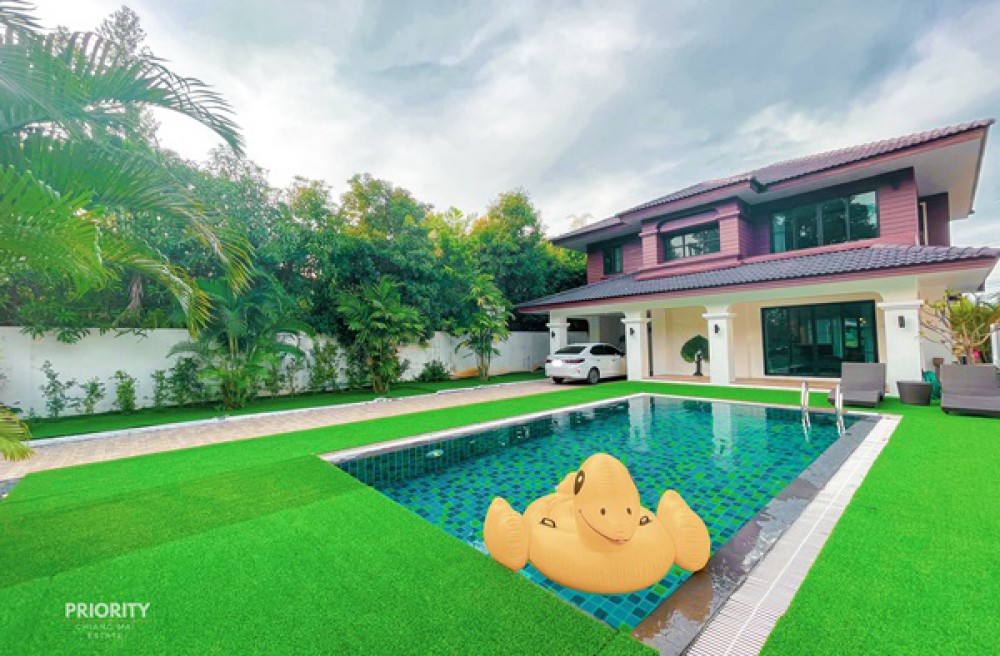 สันทราย , จังหวัดเชียงใหม่ให้เช่าบ้าน 2 ชั้น (4 ห้องนอน 4 ห้องน้ำ 1 ห้องอเนกประสงค์ 1 ห้องรับแขก 1 ครัวฝรั่ง พร้อมสระว่ายน้ำส่วนตัว)