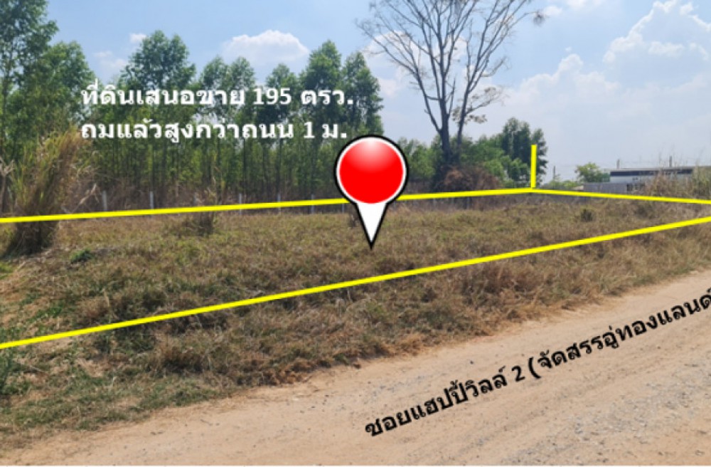 ที่ดินเนื้อที่ 195 ตรว. ถมสูงกว่าถนน 1 ม.(4 ปี) สามารถสร้างบ้านขึ้นอาคารได้ทันที