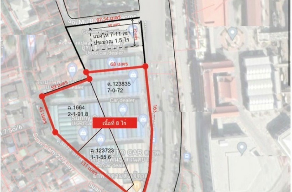 MRT Nopparat 800m. Nida University Beautiful land for rent 8rai in a community area next to the main road width 163 m. 799,999 B-M. Chapman International Bangkok 1.6 km. Suitable for investment in all businesses Bangchan Industrial Estate Bangkok 1.3 km. Easy entry and exit Ram Intra-Seri Thai