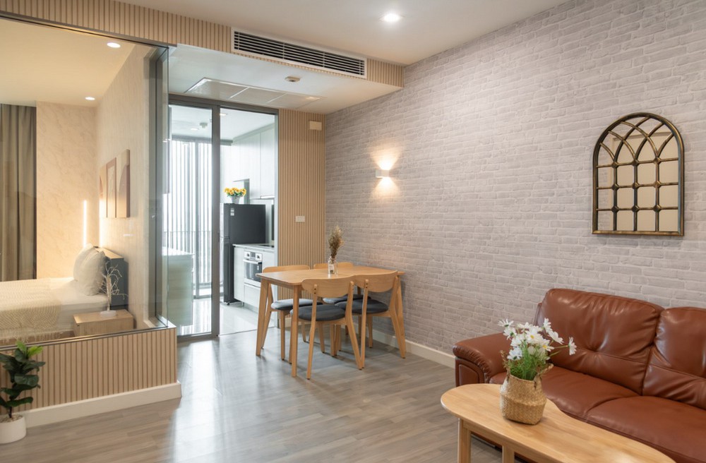 - ห้องขนาด 47 ตารางเมตร 1 ห้องนอน 1 ห้องครัว ส่วนครัวแยกเป็นสัดส่วน