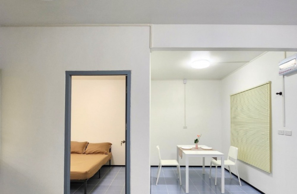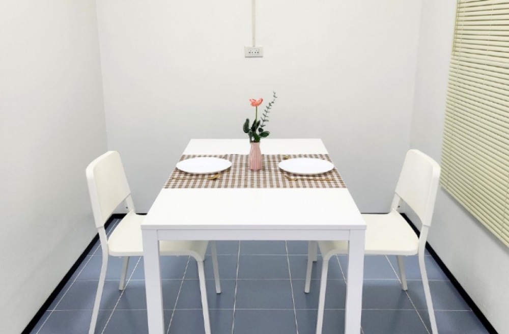 โต๊ะรับประทานอาหาร 1 ตัว พร้อมเก้าอี้ 2 ตัว เตียงนอน 5 ฟุตพร้อมที่นอน