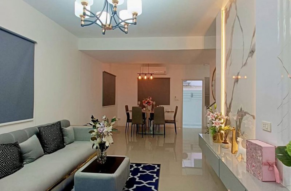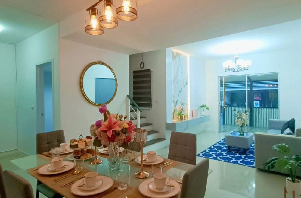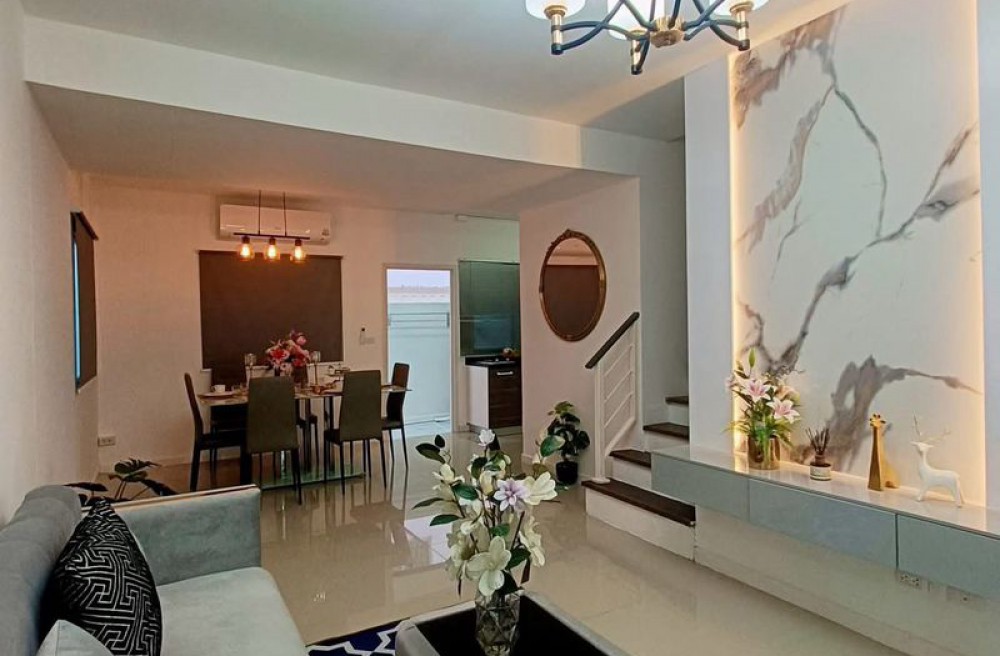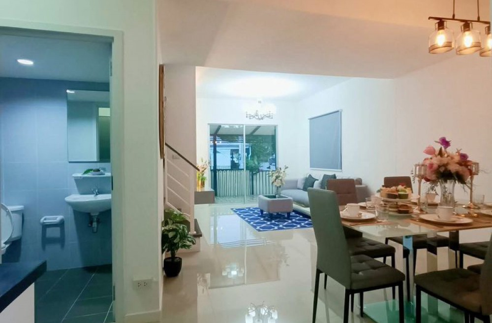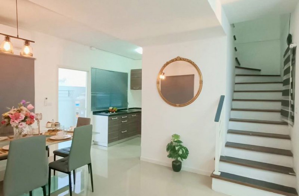 รายละเอียดบ้าน ทาวน์โฮม 2 ชั้น (หลังมุม มีพื้นที่สวนข้างบ้าน) 3 ห้องนอน | 2 ห้องน้ำ ห้องนอนบิ้วอินครบ 3 ห้อง (เตียง + ตู้เสื้อผ้า + โต๊ะ) ห้องครัวบิ้วอิน + โต๊ะทานข้าว 6 ที่นั่ง แอร์ 4 ตัว (ครบทุกห้อง) ห้องรับแขกพร้อมโซฟา + TV + ตู้โชว์บิ้วอิน ตู้เย็น + เครื่องซักผ้า ผ้าม่านทั้งหลัง เครื่องทำน้ำอุ่น ปั๊มน้ำ + แท้งค์น้ำ สนามหญ้า + สวนข้างบ้าน (ปลูกผัก/ต้นไม้ได้) จอดรถได้หลายคัน: ในบ้าน 1 คัน (รถเล็ก) ข้างบ้าน 2 คัน หน้าบ้านอีก 1 คัน