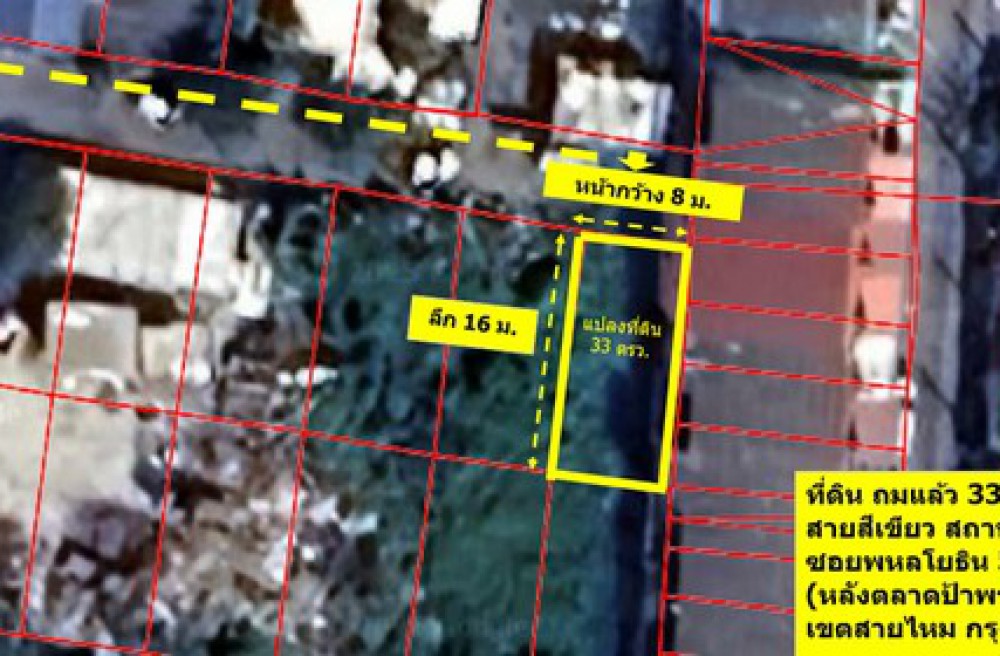 เขตสายไหม , จังหวัดกรุงเทพมหานครขายถูกที่ดิน 33 ตารางวา ขายต่ำกว่าราคาประเมิน ซอยพหลโยธิน 52 แยก 35 ใกล้รถไฟฟ้าสายสีเขียว สถานีสะพานใหม่ สนามบินดอนเมือง และ ใกล้ตลาดยิ่งเจริญ สะพานใหม่ ซึ่งเป็นย่านธุรกิจ การค้า แหล่งชุมชน สะพานใหม่-ดอนเมือง ที่ดินแปลงสามารถใช้เส้นทางได้หลายเส้นทาง เช่น ถนนพหลโยธิน-วิภาวดีรังสิต ถนนเทพรักษ์ ถนนรามอินทรา ถนนเพิ่มสิน ถนนสายไหม ถนนวัชรพล และ ถนนสุขาภิบาล5 ทำให้การคมนาคมสะดวก