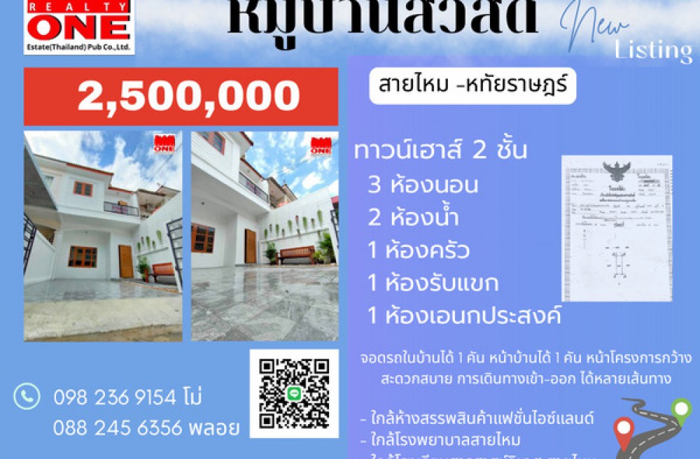 ราคา 2,500,000 บาท (ค่าโอน 50/50)