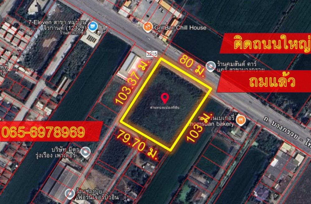 บางบัวทอง , จังหวัดนนทบุรีขายที่ดินถมแล้ว ทำเลดีติดถนนใหญ่ บางกรวย-ไทรน้อย ขนาด 5 ไร่ เหมาะทำธุรกิจ/ลงทุนโครงการ