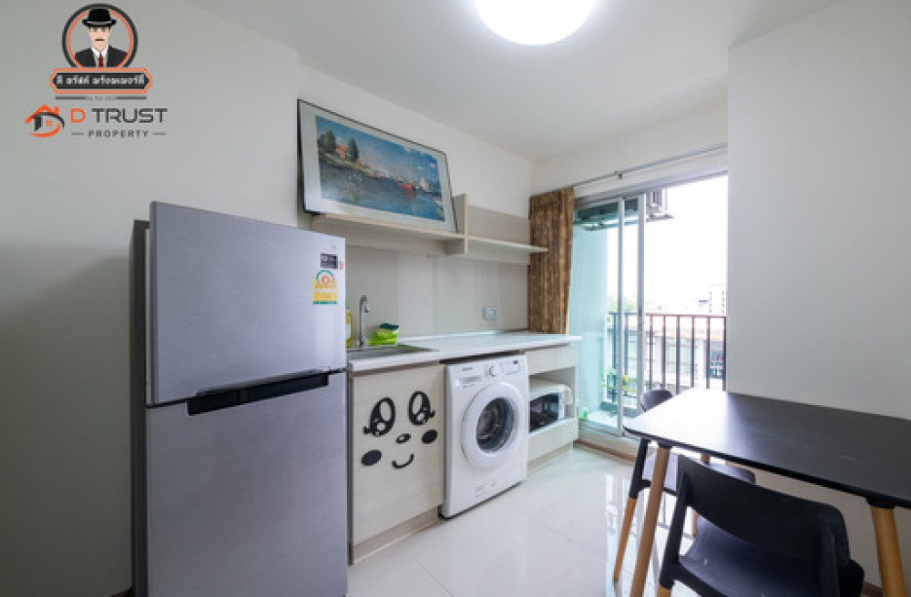 ตกแต่ง : แอร์ 1 เครื่อง / โต๊ะเครื่องแป้ง / เตียงนอนพร้อมฟูก / โซฟา / ชั้นวางทีวี / ทีวี 1 เครื่อง / ไมโครเวฟ / เครื่องทำน้ำอุ่น / ตู้เย็น 2 ประตู / เครื่องซักผ้า / โต๊ะทานข้าว / ผ้าม่านและผ้ากรองแสง