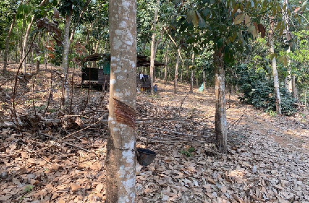- The land is already planted with rubber trees, and it is producing rubber that can be harvested.
