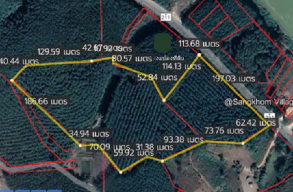 This rubber plantation land size 40-1-39 Rai, is located in a beneficial location with a width of 197 meters and a length of 300 meters. The land is adjacent to the main road, Highway 211 (Sangkhom-Pak Chom), and offers scenic views of the Mekong River, with a direct line of sight to Laos.