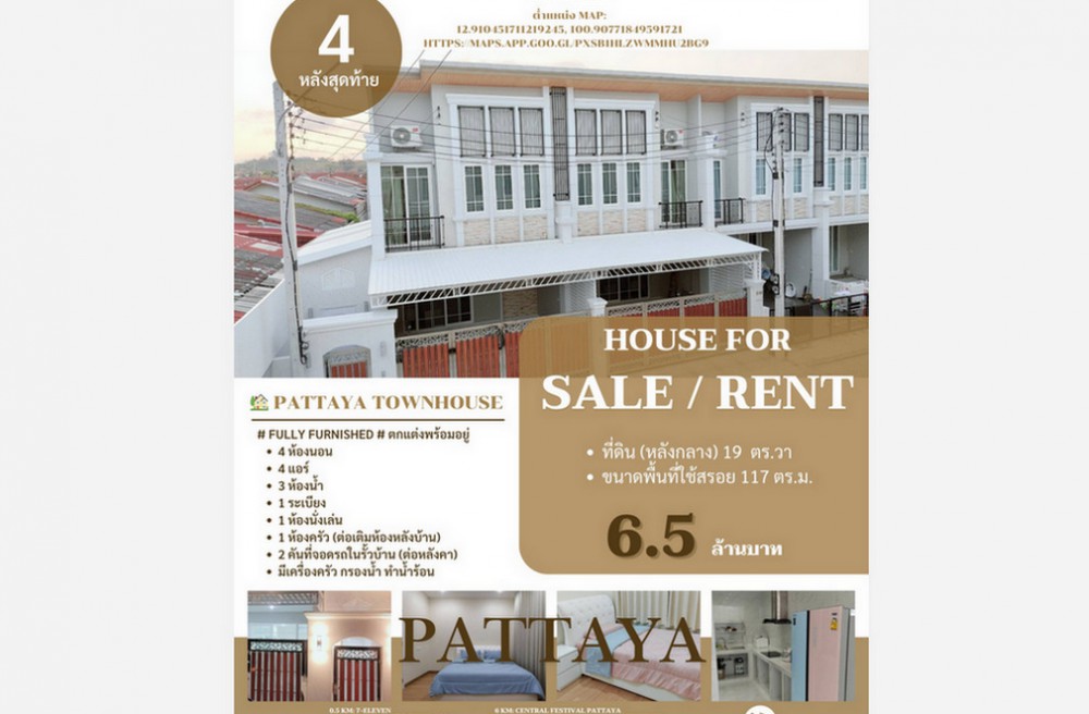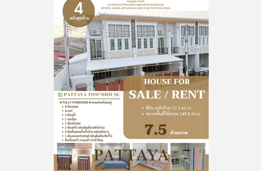 บางละมุง , จังหวัดชลบุรีGolden Town South Pattaya-Sukhumvit ทาวน์โฮมใหม่ สไตล์อังกฤษ 4 ห้องนอน 3 ห้องน้ำ (มีหลายยูนิตให้เลือก) ใกล้เซ็นทรัล พัทยา