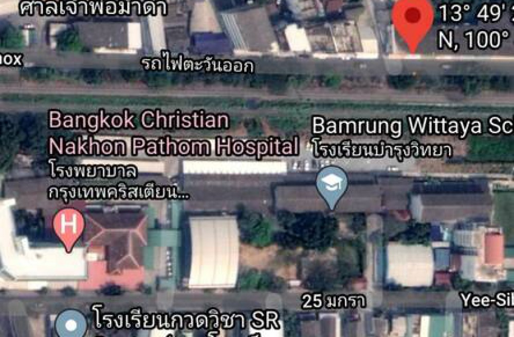 ติดถนนริมทางรถไฟตะวันออก ตรงกับหลัง รร.บำรุง ห่างองค์พระ 900เมตร รถวิ่งผ่านหน้าบ้านเยอะ ทำการค้าได้