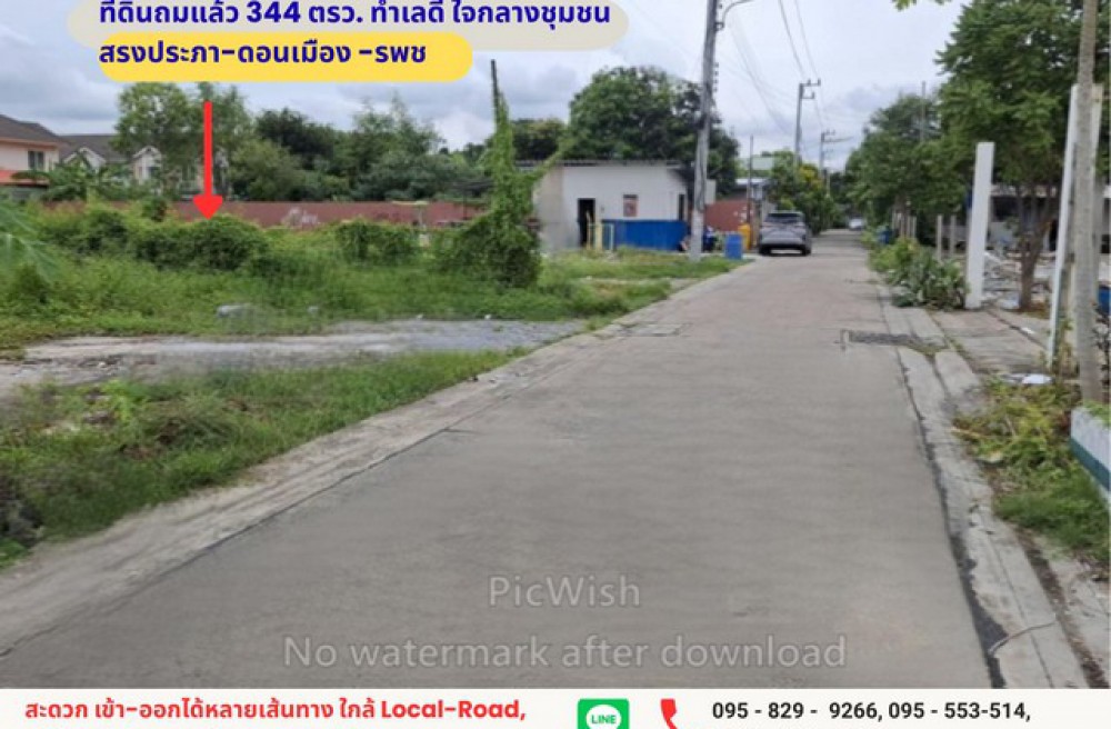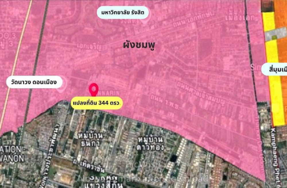 เมืองปทุมธานี , จังหวัดปทุมธานีขายที่ดินถมแล้ว เนื้อที่ 344 ตารางวา ทำเลใจกลางชุมชน ผังชมพู ถนนวัดนาวง-ดอนเมือง-ถนน รพช. เหมาะสร้างบ้านและอพาร์ทเม้น ใกล้มหาวิทยาลัย รังสิต,สนามบินดอนเมือง รถไฟฟ้าสายสีแดง สถานีมหาลัยรังสิต ต.หลักหก อ.เมือง จ.ปทุมธานี