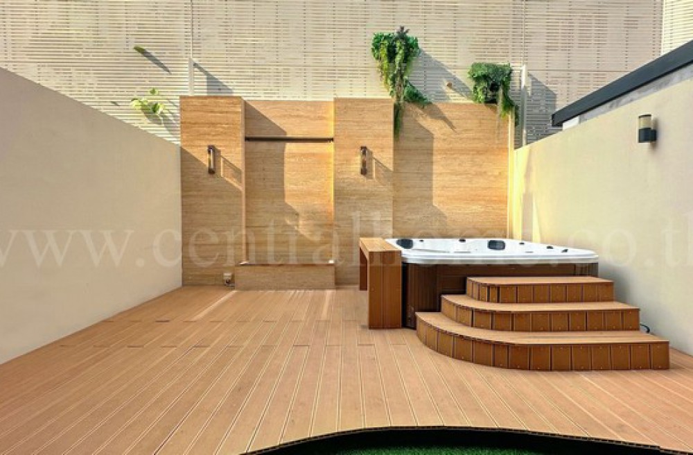 - 1 ห้องรับแขก บริเวณชั้นลอย, มีพื้นที่บริเวณหลังบ้าน พร้อม “อ่างจากุชชี่ Outdoor”