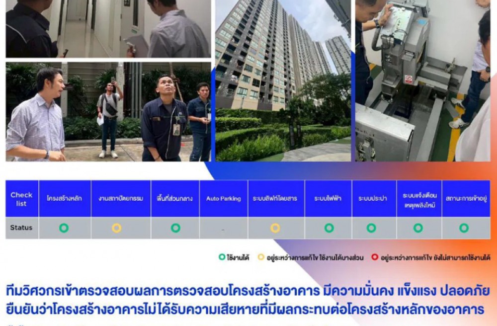 - ไม่ได้รับความเสียหายจากแผ่นดินไหว, ได้รับการตรวจสอบโดยผู้เชี่ยวชาญเรียบร้อย