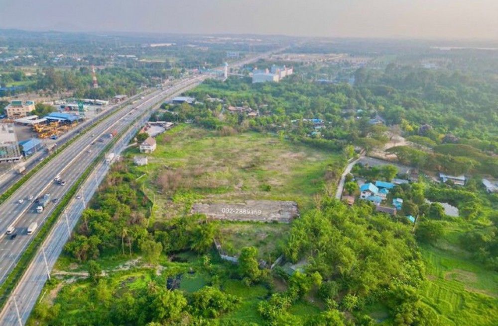 ที่ดินบ้านห้วยกรุ แปลงสวย ทำเลงาม ติดถนนคู่ขนาดบายพาสขาเข้ากรุงเทพ ใกล้อ่างเก็บน้ำบางพระ
