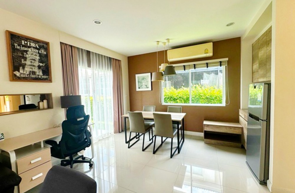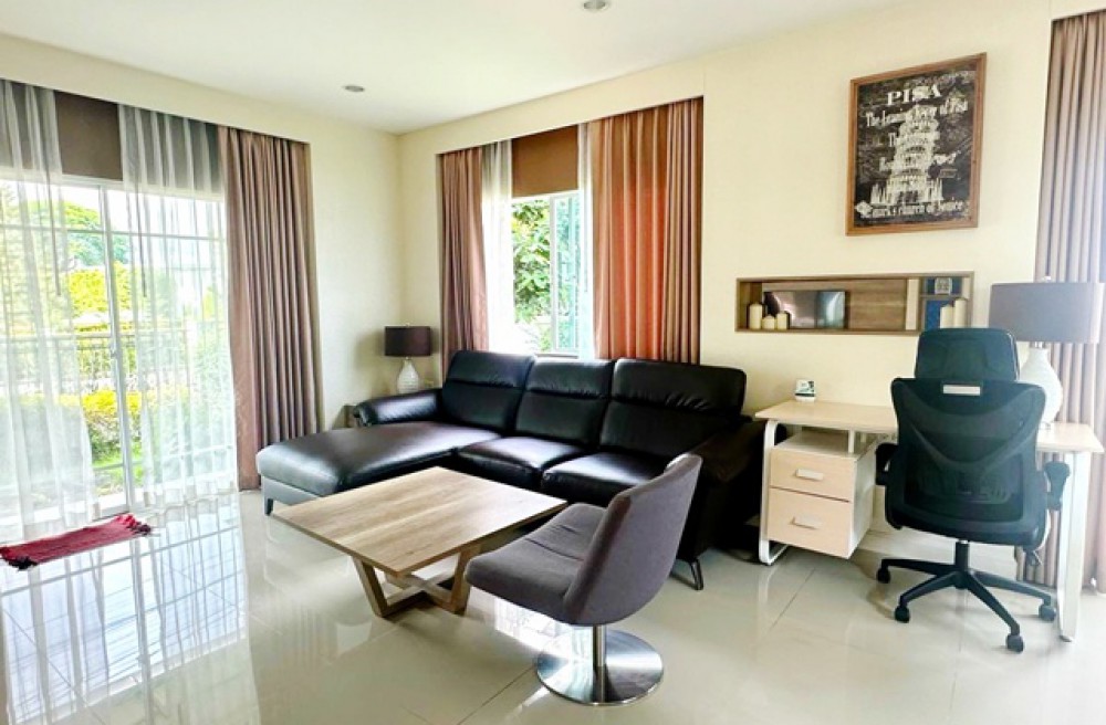 Kasem Bundit Village Romklao 1.2 km. Discount22% off MRT MinBuri 2.1km. 2-story detached house for rent 59 sq.wa. 239 sq.m. Luxury fully furnished garden view 3 bed 3 bath 31,998 B-M. Min Buri Market 1 2.7 km. Community area shopping easy access. Romklao-Ramkhamhaeng Road.