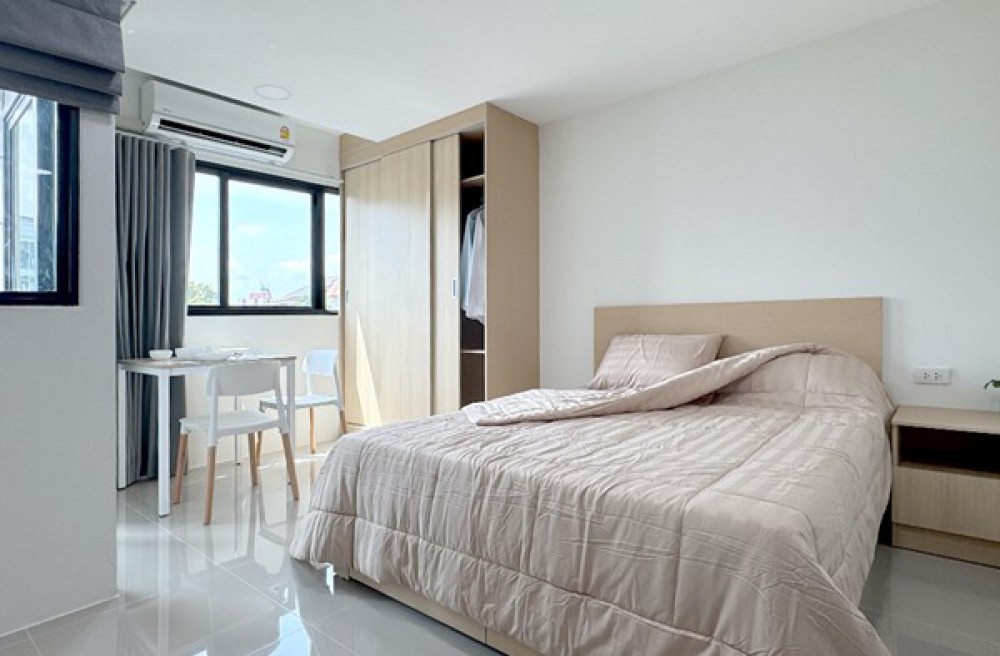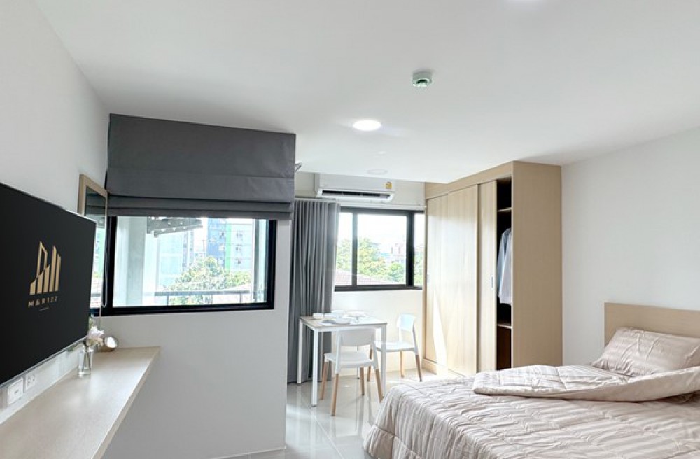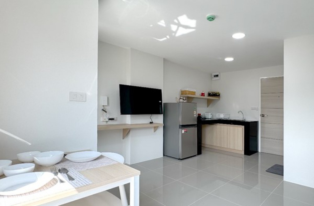พร้อมเฟอร์นิเจอร์ครบชุด (เตียง + ฟูก, ทีวี, ตู้เย็น, โต๊ะทานข้าว + เก้าอี้, โต๊ะเครื่องแป้ง)