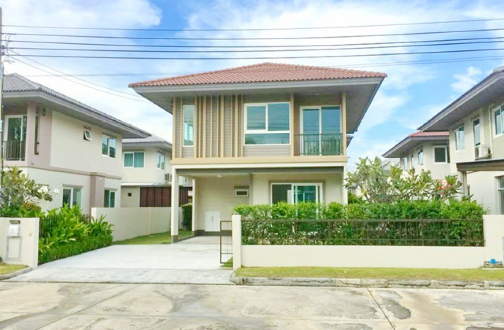 Mansion ABAC ฺBangna 3.7 km. Sukhanthawat Temple BangSaoThong Hospital 2km. Sansiri 2-story house for rent unfurnished new condition 50 sq.wa. 200 sq.m. Kanchanaphisek Technical College 1.6 km. 3 bed 2 bath 18,899 B-M. Quiet private and highly secure atmosphere. Good location. Conveniently located on Bangna-Trad Road.