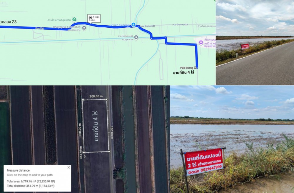 - ที่ดิน มีถนนตัดผ่าน สามารถทะลุไปคลอง 22 ได้