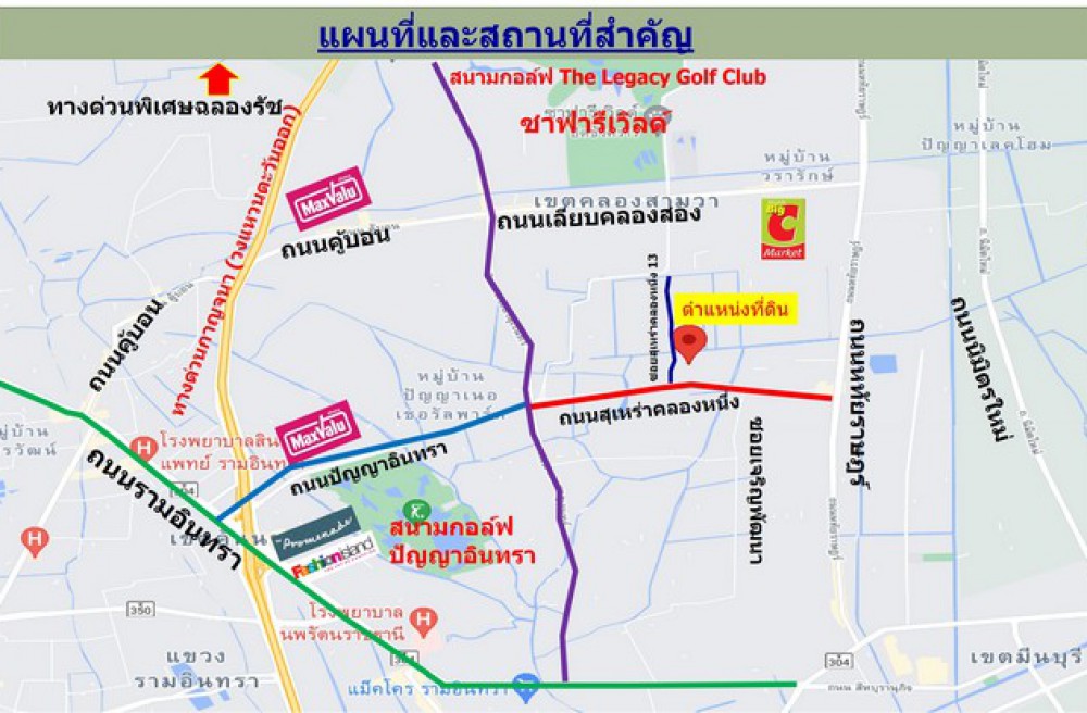 - ที่ดินสามารถเข้า-ออกได้หลายทาง (ถนนคู้บอน, ถนนปัญญาอินทรา, ถนนรามอินทรา 109,