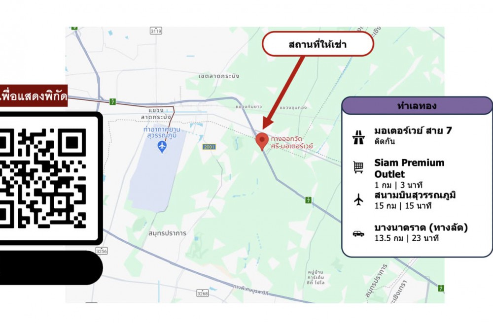 หมายเหตุ: ถนน ส.ป.2032 ด้านหน้า จะเริ่มทำการปรับปรุง การสัญจร จะสะดวก และจะเพิ่มมากขึ้น หน้ากว้างด้านมอเตอร์เวย์ 32 เมตร, ด้าน ส.ป.2032 35 เมตร