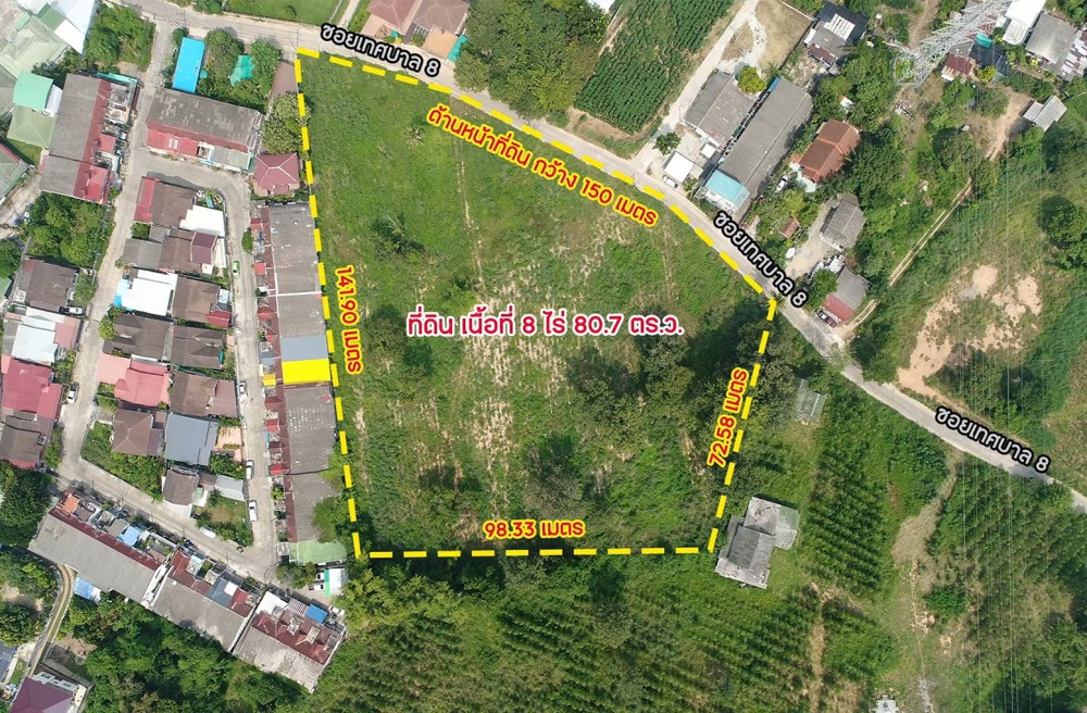 ติดกลับถนนเทศบาลซอย 8 ใกล้หมู่บ้านโดยรอบ ด้านหลังเป็นวิวภูเขา