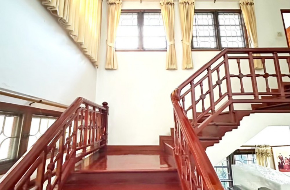 บ้านหรูสวยพร้อมอยู่ บรรยากาศร่มรื่นมีสวนขนาดใหญ่อยู่ด้านหน้าบ้าน