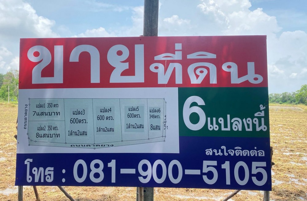 ● ขายที่ดิน 7 ไร่ แบ่งเป็น 6 แปลง 350-600 ตารางวา (ตรว. ละ 2,000 บาท)