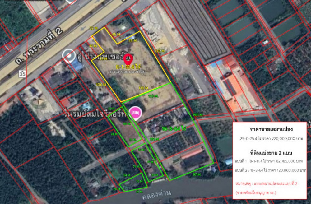เมืองสมุทรสงคราม , จังหวัดสมุทรสงครามขายที่ดินพร้อมรีสอร์ท 25-0-75.4 ไร่ (แบ่งขาย) ติดถนนพระรามที่ 2 จ.สมุทรสงคราม