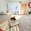 แอร์ 1 เครื่อง เตียงนอนพร้อมที่นอน 5 ฟุต โซฟา โต๊ะเครื่องแป้ง