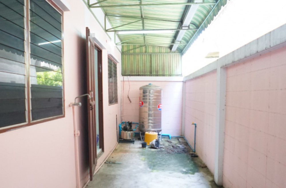ชั้นล่างห้องโถงใหญ่ 1 ห้องน้ำ , 3 ห้องอเนกประสงค์ หลังอาคารโล่งมีต่อเติมหลังคา