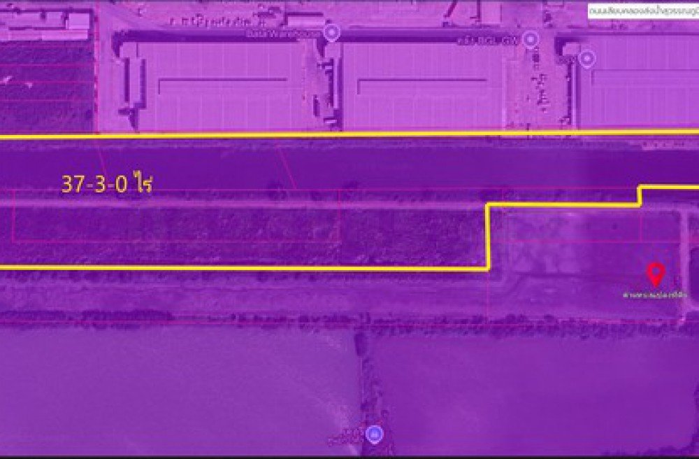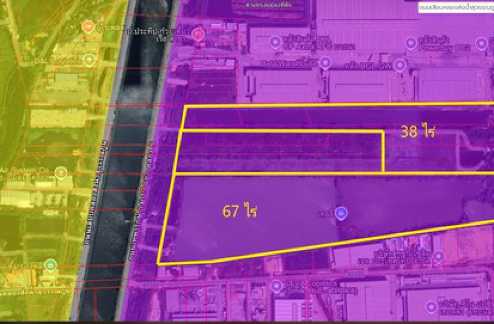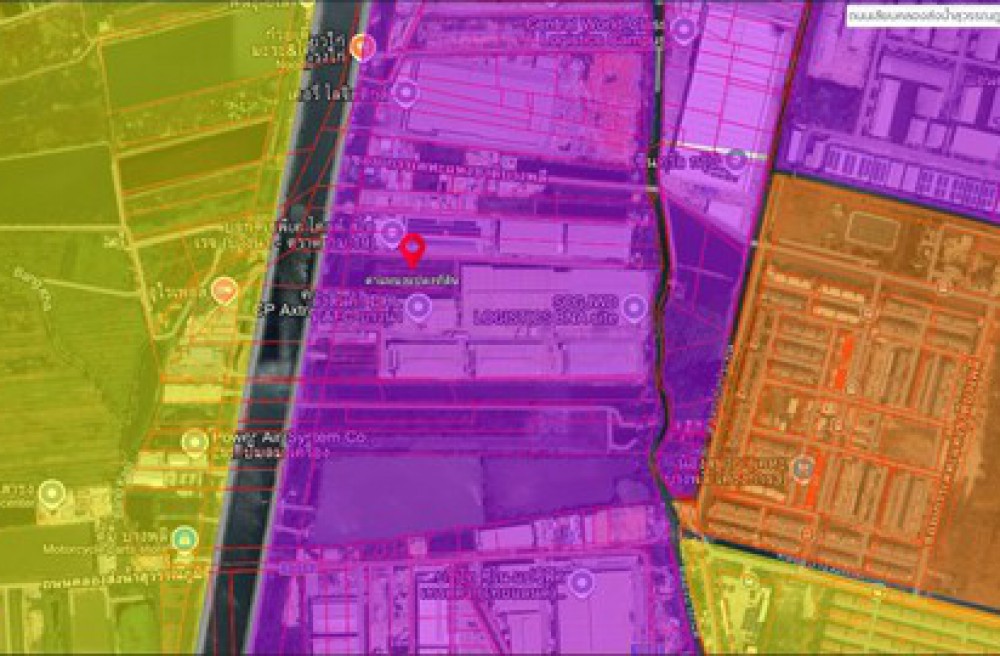 บางพลี , จังหวัดสมุทรปราการที่ดินสีม่วงเข้ม บางนาตรา คลองส่งน้ำสุวรรณภูมิ สร้างโรงงาน สร้างโกดัง เนื้อที่ 37-3-0 ไร่ ขายราคา 533 ล้านบาท บางพลี สมุทรปราการ