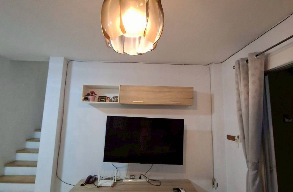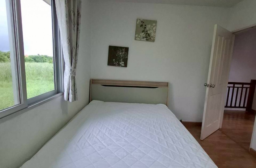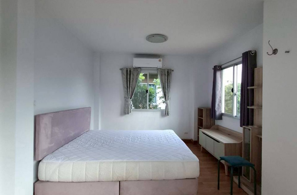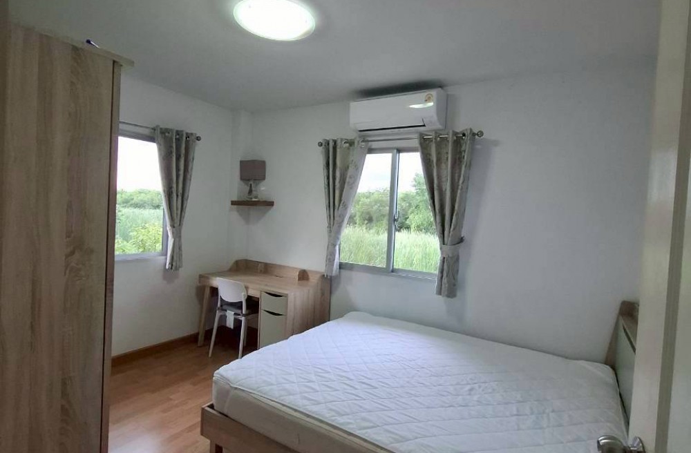เป็นบ้านแฝด 2 ชั้น 3 ห้องนอน 2 ห้องน้ำ มีแอร์ทุกห้องรวม 5 เครื่อง ( เป็นแอร์เครื่องใหม่ ) มีเครื่องซักผ้า ตู้เย็น ทีวี มีอินเตอร์เนทภายในบ้าน ราคารวมค่าส่วนกลางรายปี หมู่บ้านมีฟิตเนส.สวนหย่อมและสระว่ายน้ำของโครงการ