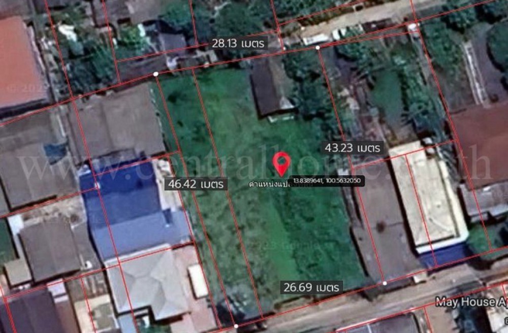 - ที่ดินเปล่า ขนาด 3 งาน ขายตารางวาละ 120,000 บาท/ตร.ว หน้ากว้าง 26.69 เมตร ลึก 43.23 เมตร
