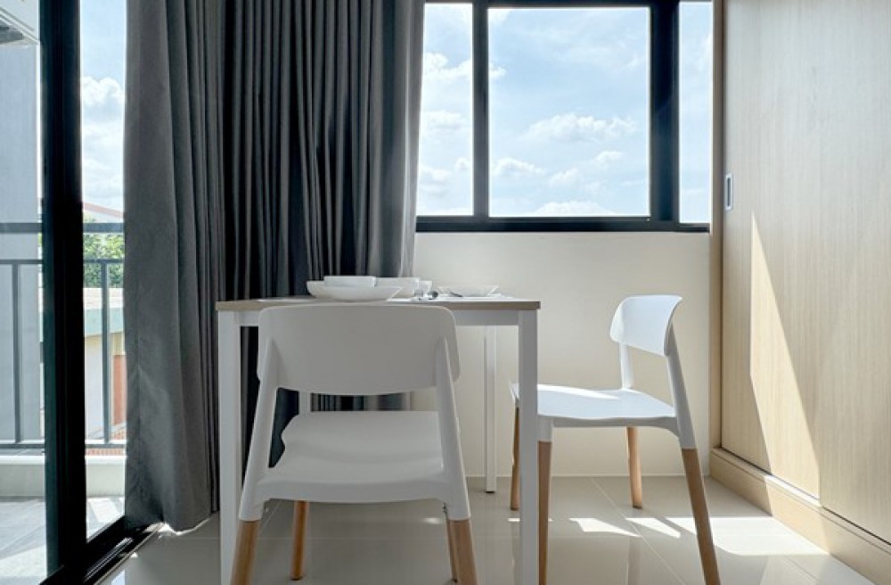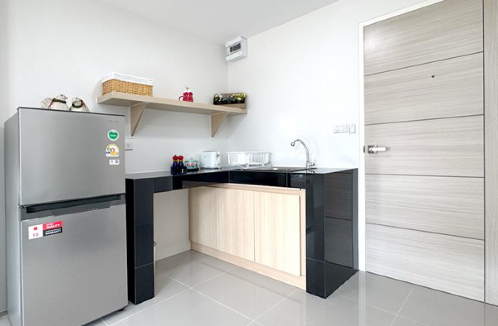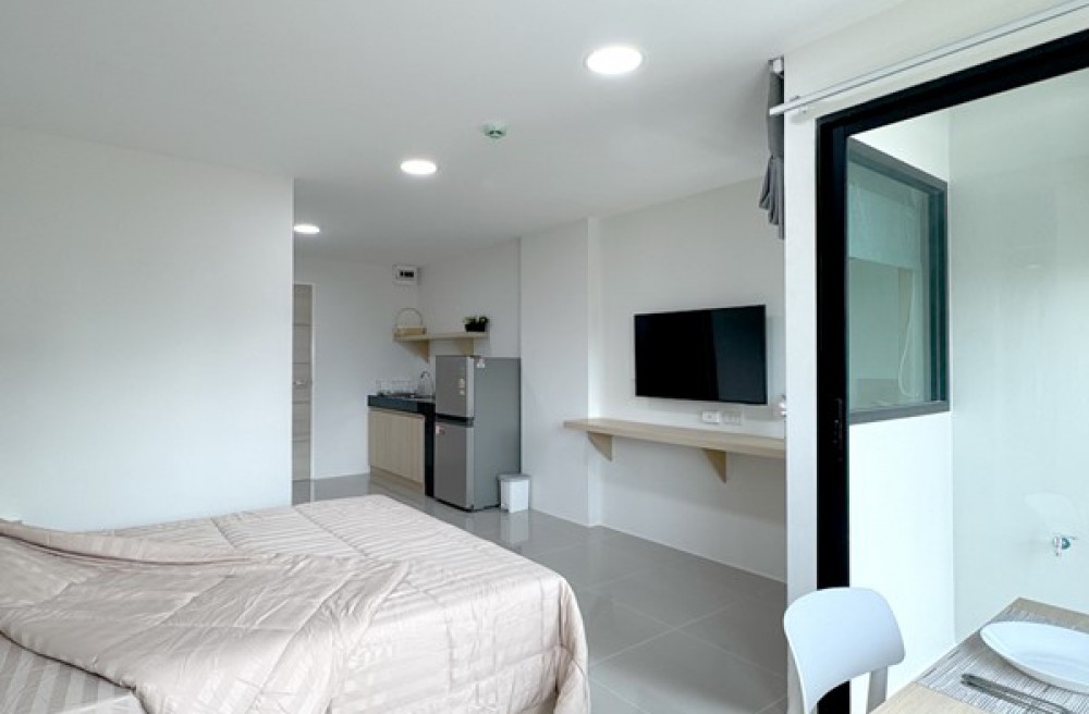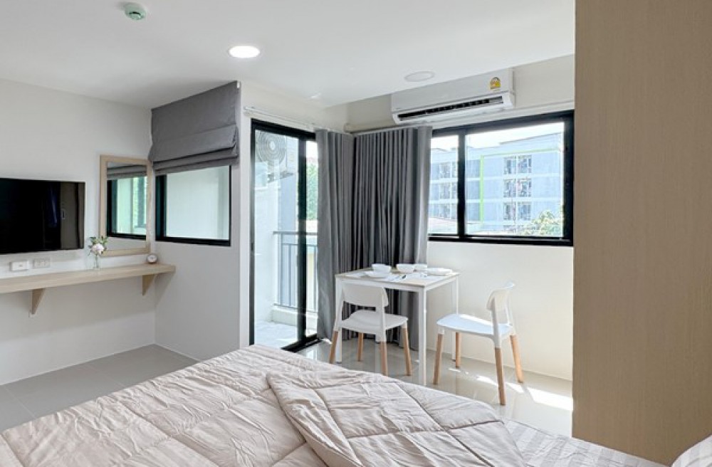 พร้อมเฟอร์นิเจอร์ครบชุด (เตียง + ฟูก, ทีวี, ตู้เย็น, โต๊ะทานข้าว + เก้าอี้, โต๊ะเครื่องแป้ง)
