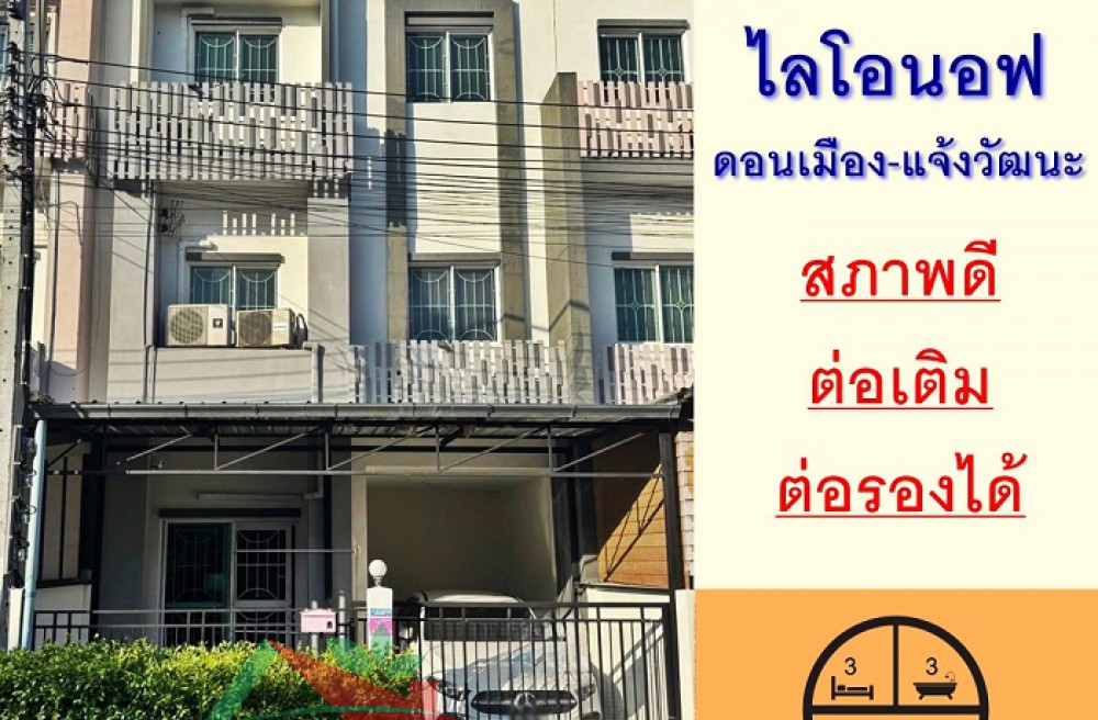 เขตดอนเมือง , จังหวัดกรุงเทพมหานครขายทาวน์โฮม3ชั้น 19.2ตรว. ม.ไลโอนอฟ ดอนเมือง-แจ้งวัฒนะ สภาพดีพร้อมอยู่ จัดกู้ฟรี