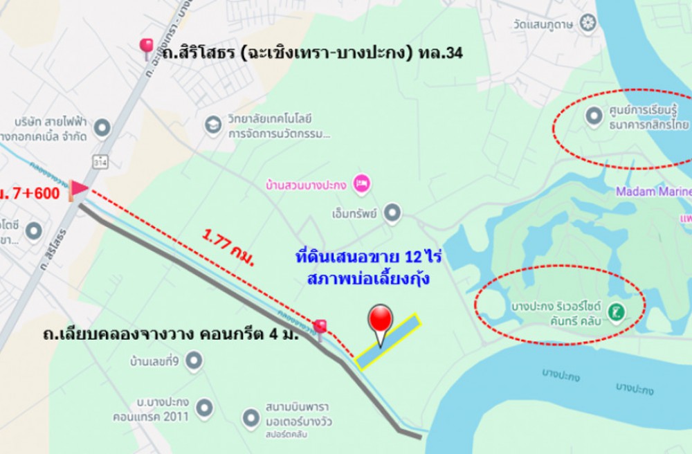 บ้านโพธิ์ , จังหวัดฉะเชิงเทราขาย ที่ดิน ติดถนนเลียบคลองจางวาง ใกล้แม่น้ำบางปะกง อ.บ้านโพธิ์ แปลงสวย 12 ไร่ ติดโครงการบางปะกงริเวอร์ไซด์ พร้อมโอน ฟรีค่าโอน ราคายุติธรรม