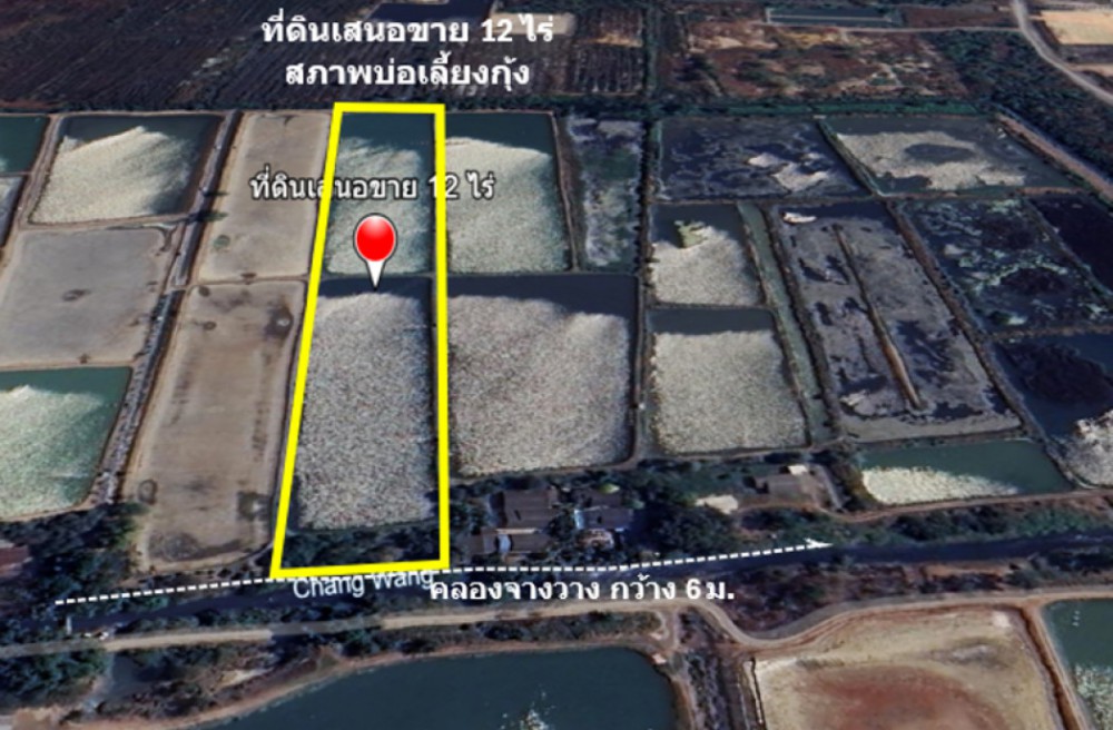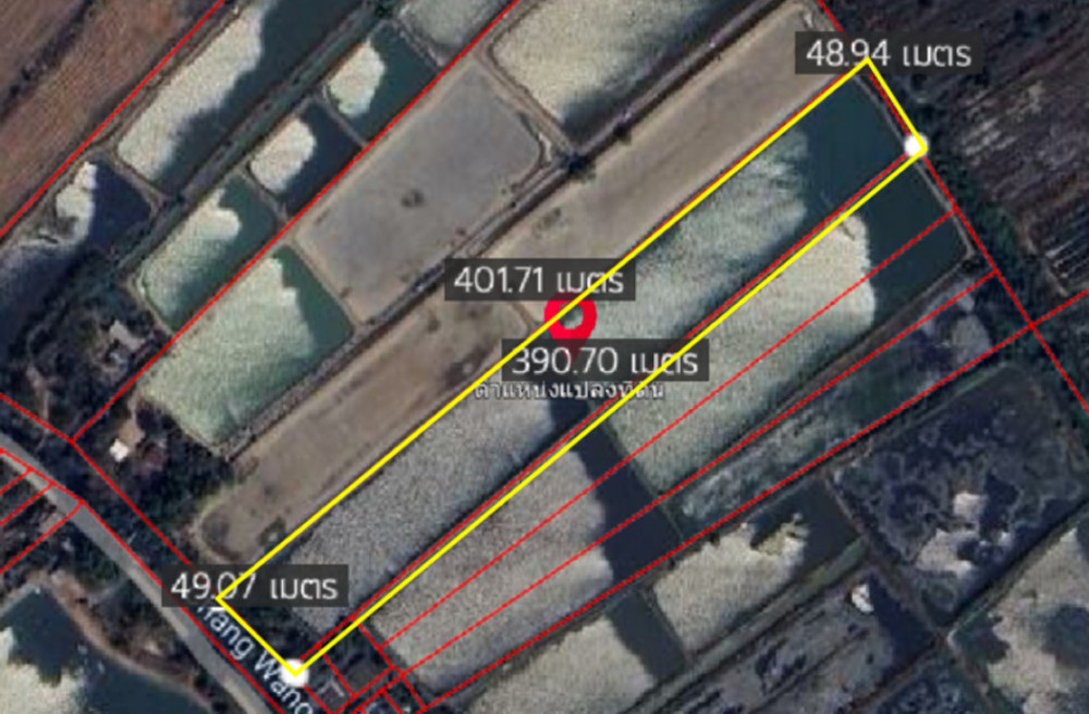 รูปที่ดินสี่เหลี่ยมผืนผ้า เป็นบ่อเลี้ยงกุ้ง