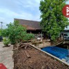 ข้างบ้านมีศาลาขนาดใหญ่หลังคาสูง และด้านหลังศาลามีบ่อน้ำ 1 บ่อ