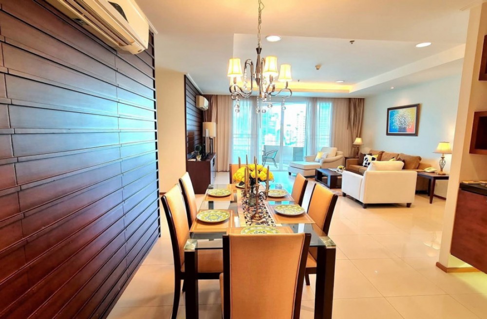 ตกแต่งครบด้วยเฟอร์นิเจอร์หรู มีครัวขนาดใหญ่ ห้องนั่งเล่นและห้องรับประทานอาหารกว้างขวาง พร้อมวิวเมืองแบบพา