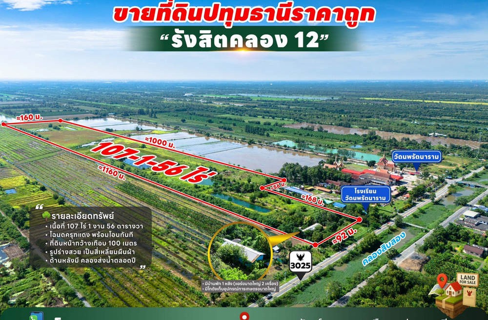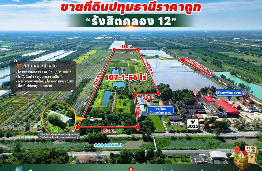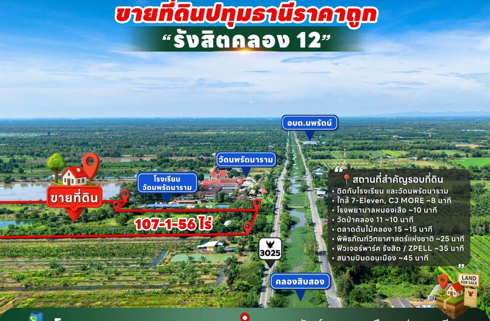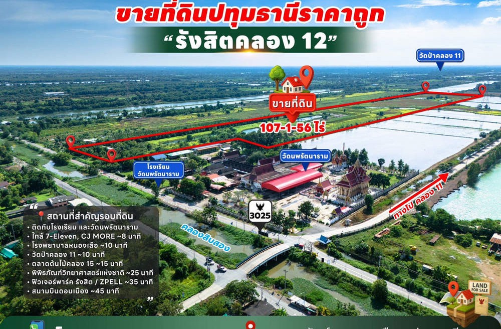 หนองเสือ , จังหวัดปทุมธานีขายที่ดินปทุมธานี ราคาถูก “รังสิตคลอง 12”