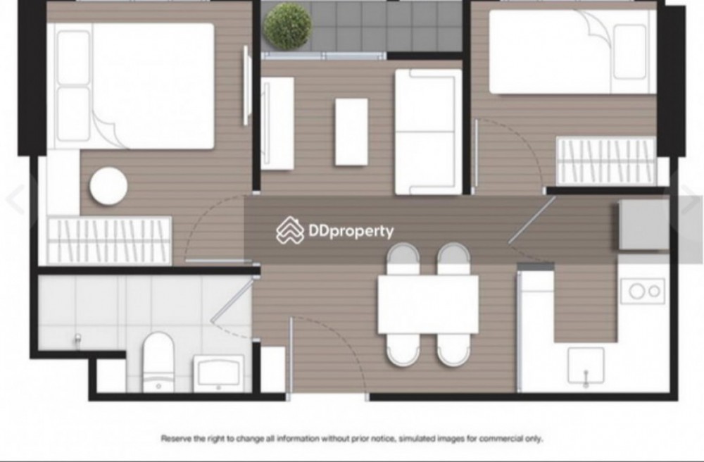 - ชนิด 2 ห้องนอน 1 ห้องน้ำ