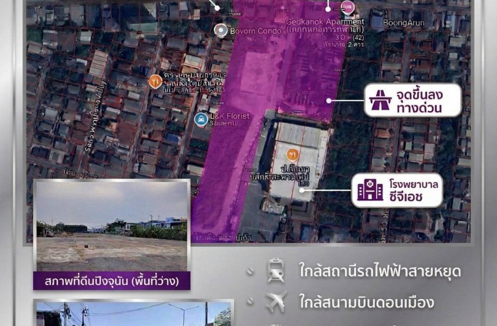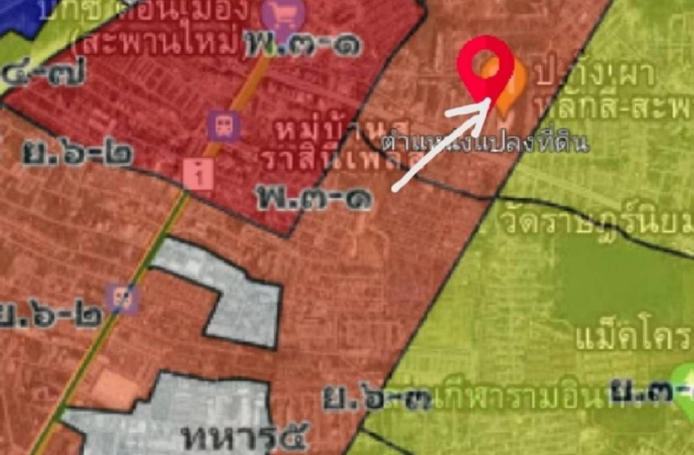 มีผังเมืองสีส้ม ใกล้สนามบินดอนเมือง 4 กิโลเมตร เหมาะกับการทำคอมมูนิตี้มอลล์ โกดัง คลังสินค้า ร้านอาหาร ที่จอดรถ ร้านซักอบรีด ฯลฯ