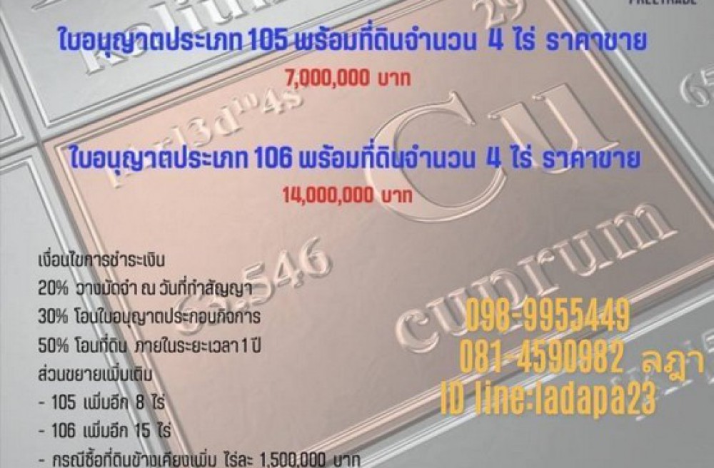 #ขายและให้เช่าที่ดินพร้อมใบอนุญาต105 และ 106