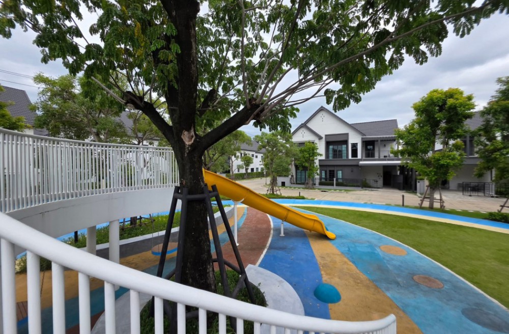 ครอบครัวอย่างลงตัว บนพื้นที่ส่วนกลาง พื้นที่สีเขียวและต้นไม้ใหญ่กว่า 3 ไร่ ที่ไม่เพียงสวยงามร่มรื่น แต่ยังใช้งานได้จริงในทุกฟังก์ชัน