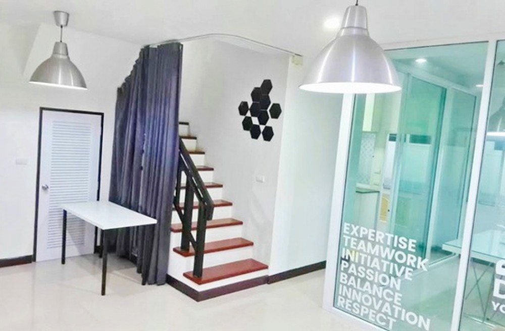 Bangkok-Nonthaburi3 MRT Yaek Tiwanon 600 m. 2-story townhouse for rent/sale 37 sq.wa. 296 sq.m. 26,899 B-M. 2.7 km. from Sathit Christian International School Fully furnished 3 bed 3 bath selling for 8.49 million baht Located in the heart of the city Ideal for a home office or residence Shopping nearby Bangkok Nonthaburi Market 2.1 km. Easy access
